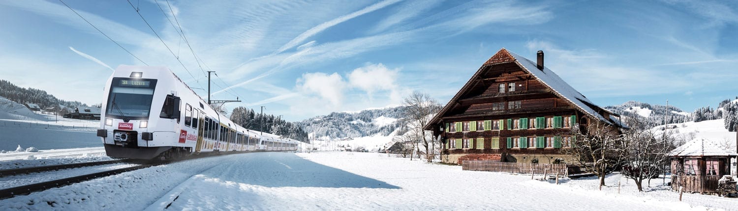 The BLS Regional Express connects Berne and Lucerne, traversing the typical, rolling landscape of Emmental and passing the UNESCO biosphere Entlebuch. At the heart of idyllic Emmental, the train stops right in front of the Kambly Experience, where secrets of the art of pastry making are revealed.