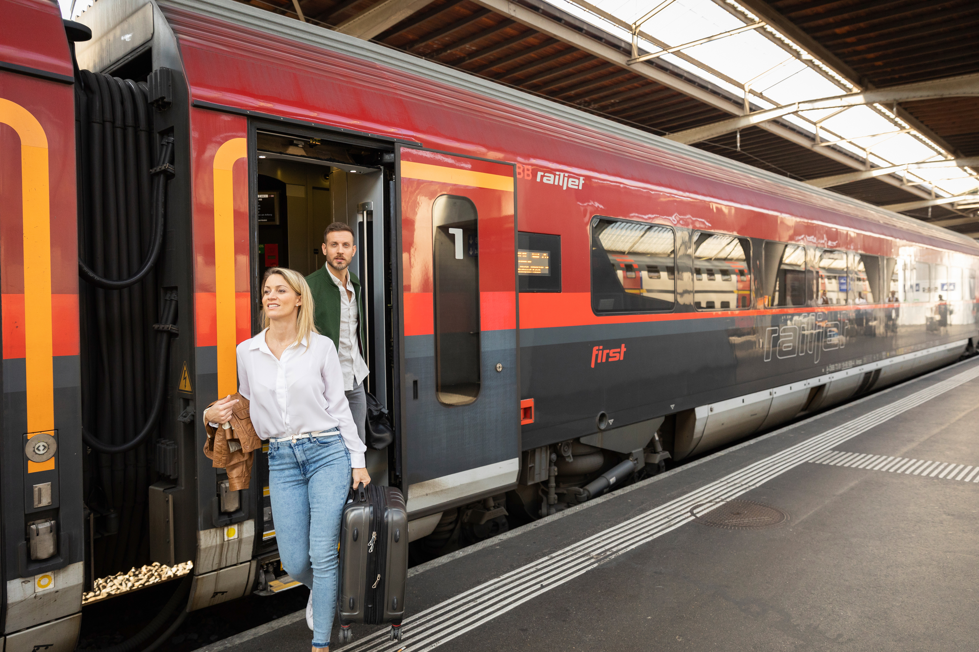 During the day, the Railjets of Austrian Federal Railways (ÖBB) take travellers to Zurich at two-hour intervals. The Zurich hub offers excellent onward connections to all Swiss regions. Depending on the chosen class, guests benefit from various services such as power outlets and catering to the seat.