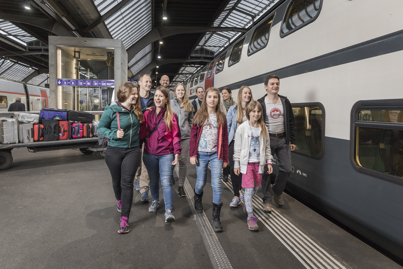 Many groups travel through Switzerland by tour coach. The most common argument against travelling by train, bus and boat is the issue of luggage transportation for an entire group. With the incentive of an attractive group luggage offer, groups are hoped to be won over to Swiss public transport.